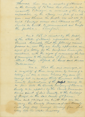 Whereas, There are a number of Streams in the County of Boone that should be permenantly Bridged, on account of their being impassable in the Spring and fall of each year;