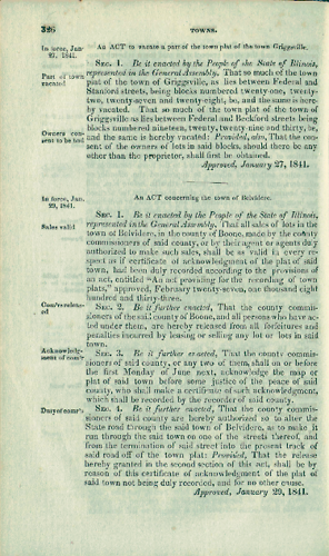 Printed Document, 1 page(s), Laws of the State of Illinois, Passed by the Twelfth General Assembly (Springfield, IL: William Walters, 1841), 326, GA Session 12-2,