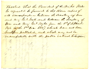 House copies of all correspondence between the secretary of War and Maj Genl Scott; and between the Secretary of War and Maj Genl Taylor, from the 1st of September 1846, to the 1st Decr 1847, which have not been heretofore published, and which may not be incompatable with the public interest^.^ to be given.