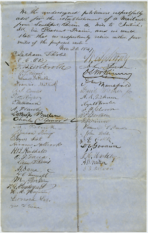 C. Latham Sholes & 42 others asking for the establishment of a mail route from Southport Wisconsin to Antioch