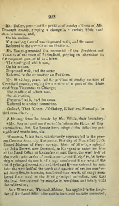 Printed Transcription, 2 page(s), Journal of the House of Representatives of the Ninth General Assembly of the State of Illinois, at Their First Session (Vandalia, IL: J. Y. Sawyer, 1835), 203-204